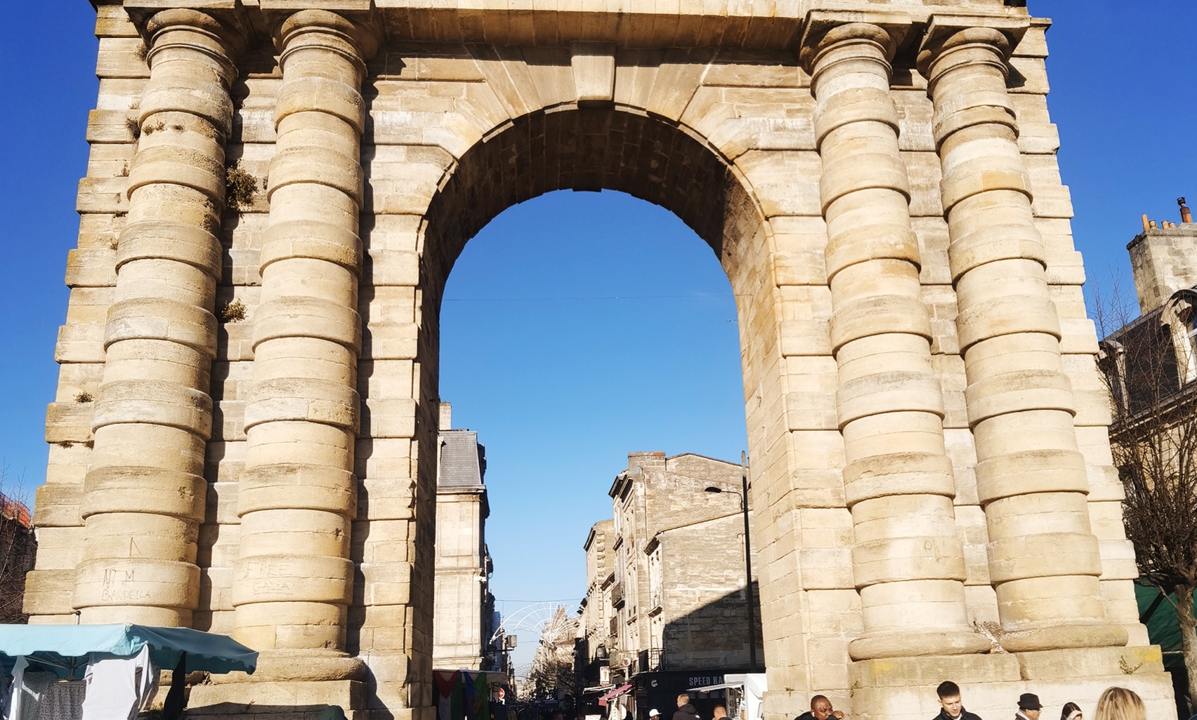 În Piața Victoriei aproape de Poarta Aquitaniei sunt două broaște țestoase din bronz, care au fost puse cam prin anul 2005 și care au pe carapace ciorchini de struguri care ar vrea să simbolizeze vechimea vinului de Bordeaux.